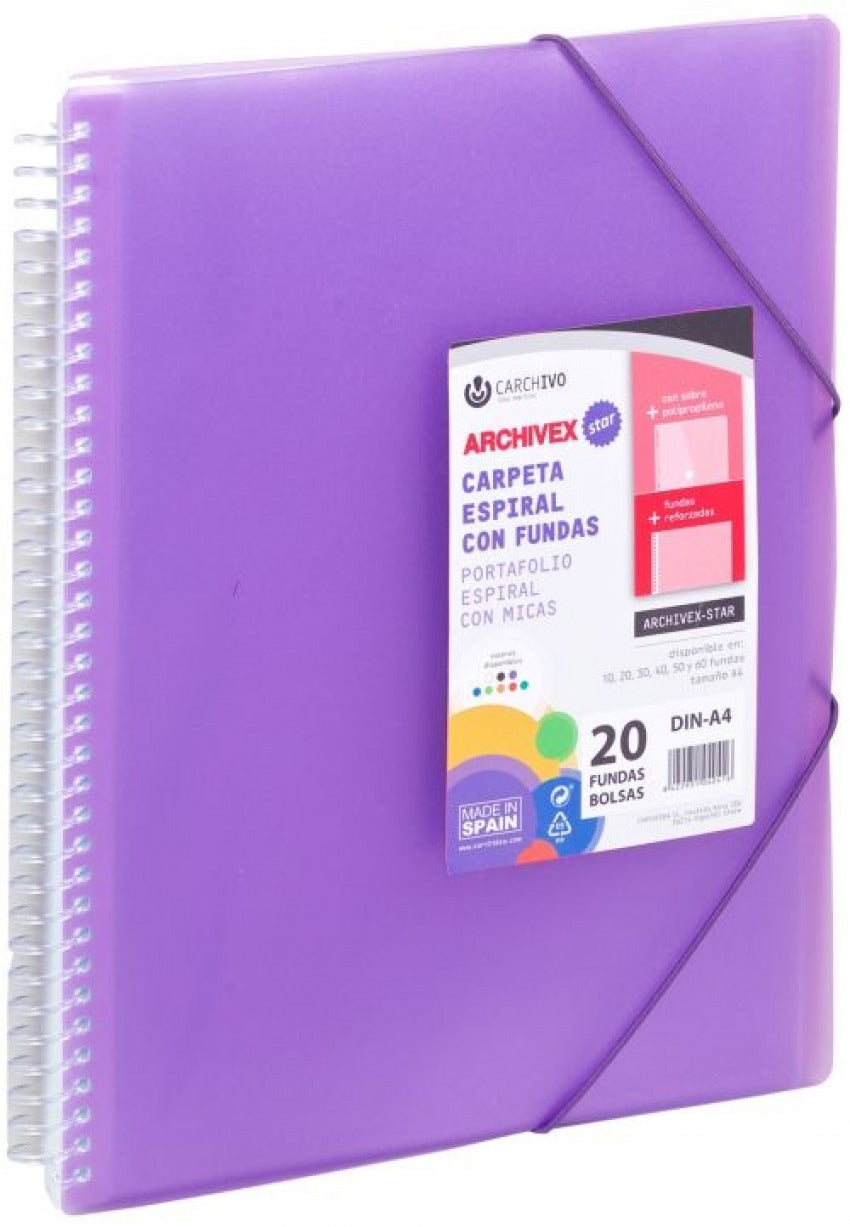 CARPETA 30 FUNDAS A4 ESPIRAL ARCHIVEX STAR VIOLETA CARCHIVO